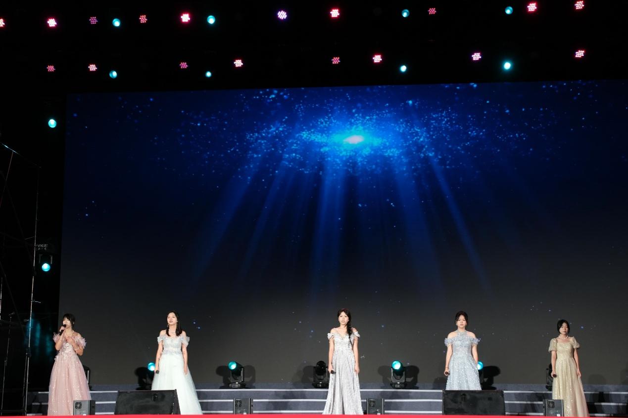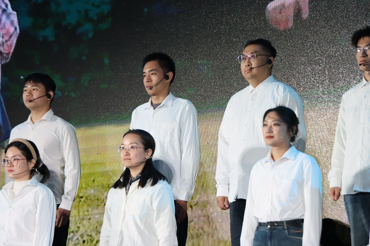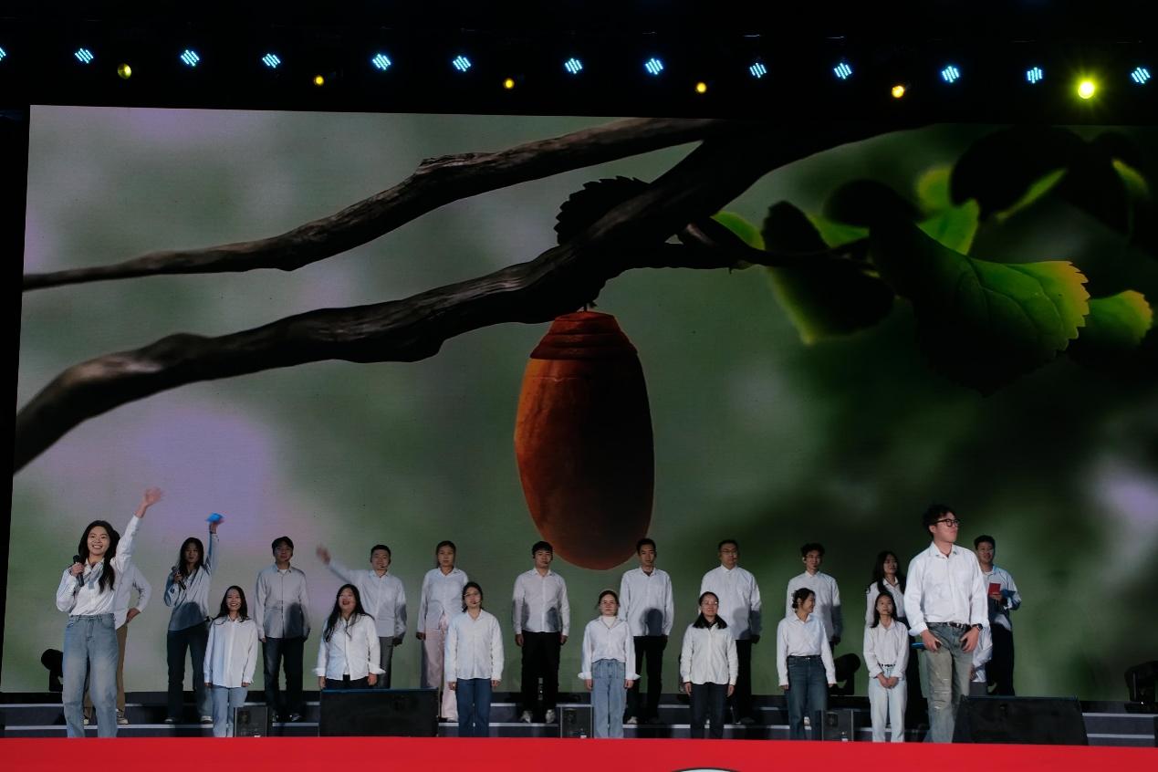 歌曲《有我》以激昂的旋律唱出新时代青年的担当。“强国之路,有我!民族复兴,有我!”的歌声响彻会场,展现城院学子接过历史接力棒的坚定决心。
