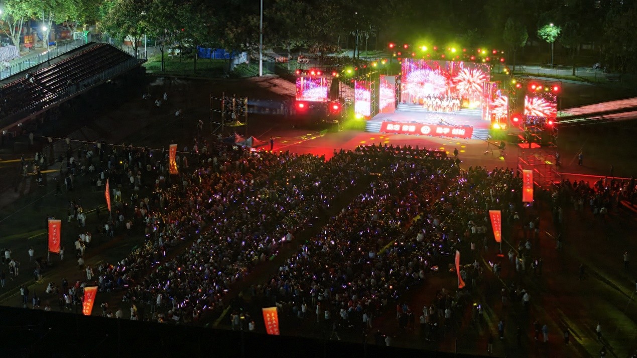 10月23日晚,武汉城市学院东湖校区运动场洋溢着青春与艺术的蓬勃气息,“美育铸魂启新程 青春筑梦谱华章——2025年美育思政教学展示暨新生文艺晚会”在热烈的掌声中拉开帷幕。红安县黄麻纪念园管理处党委书记、主任姜富贵,党委委员、总工程师吴边,办公室主任曹中能,宣教股股长聂荣华,五好讲解员陈炜,学校校长陈建勋、党委书记肖军、副校长王军、工会主席吴翠红、校长助理严建出席,全校师生共聚一堂,见证这场美育与思政深度融合的青春盛典。