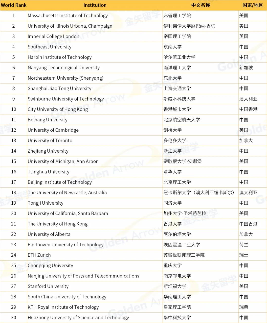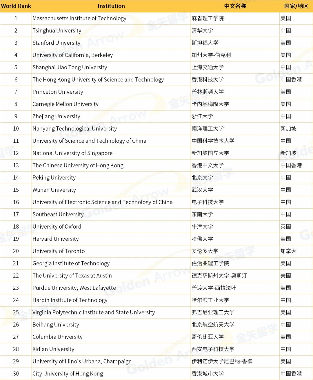 小编整理了部分热门专业Top30院校,供同学们参考: