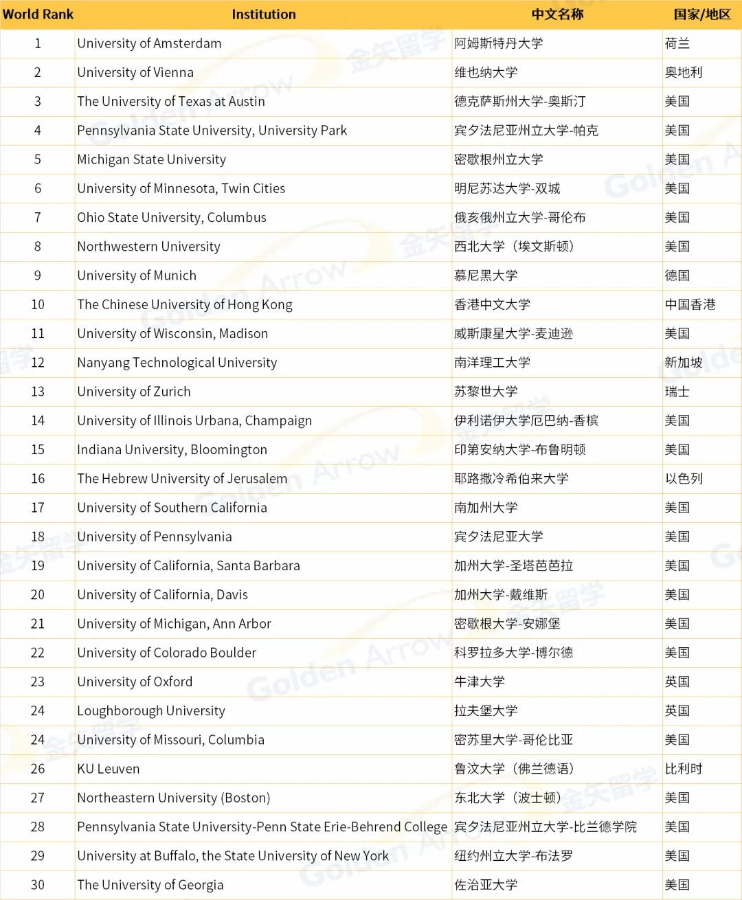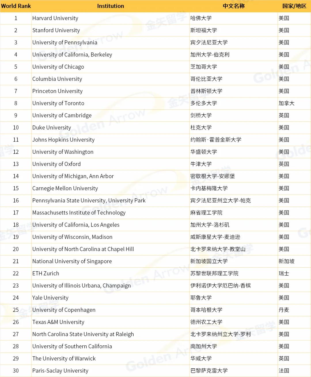 美国大学在今年的软科世界一流学科排名中仍然保持领先,在27个学科占据榜首。