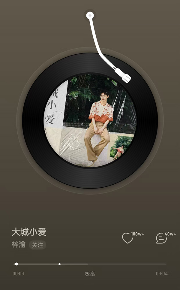 他火到什么程度呢,一首翻唱的《大城小爱》,在网易云上随便都有100W+的点赞和40W+的评论。