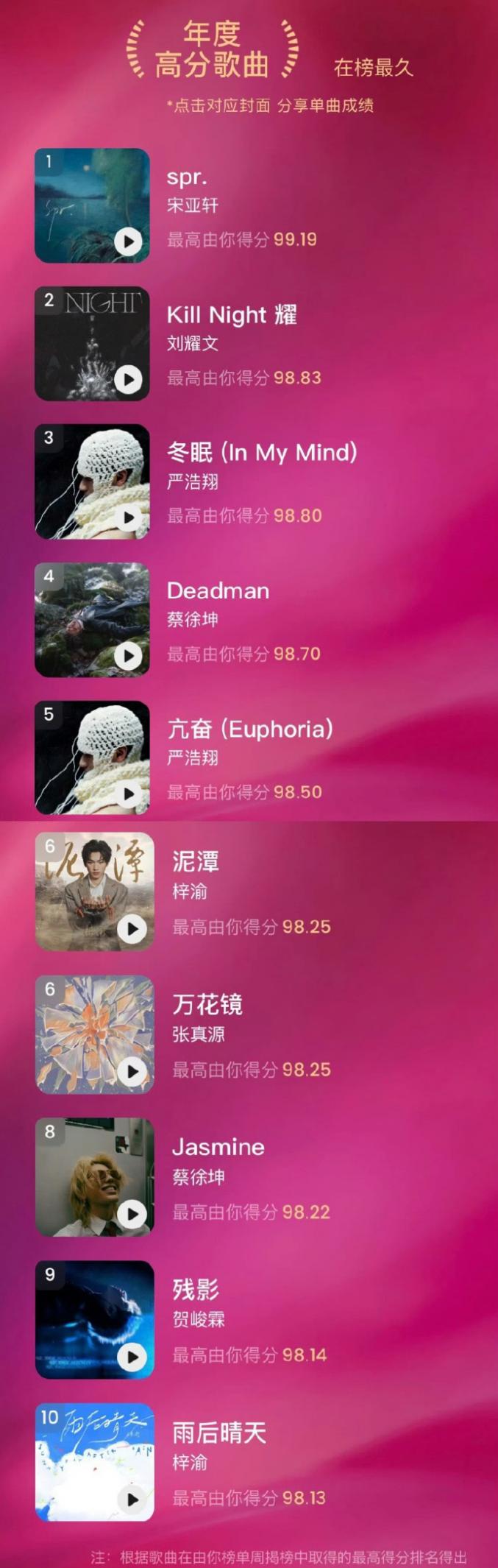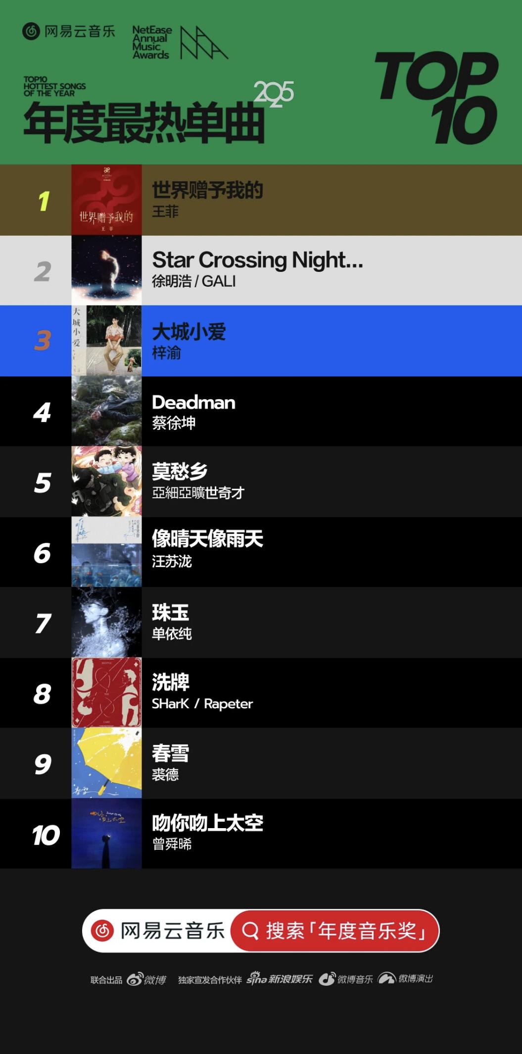 音乐榜单比较特殊,它没有统一的标准,也没有权威的公信力背书,都是各个音乐平台各玩各的。我这里简单放一下目前最主流的音乐流媒体平台评选出来的榜单。