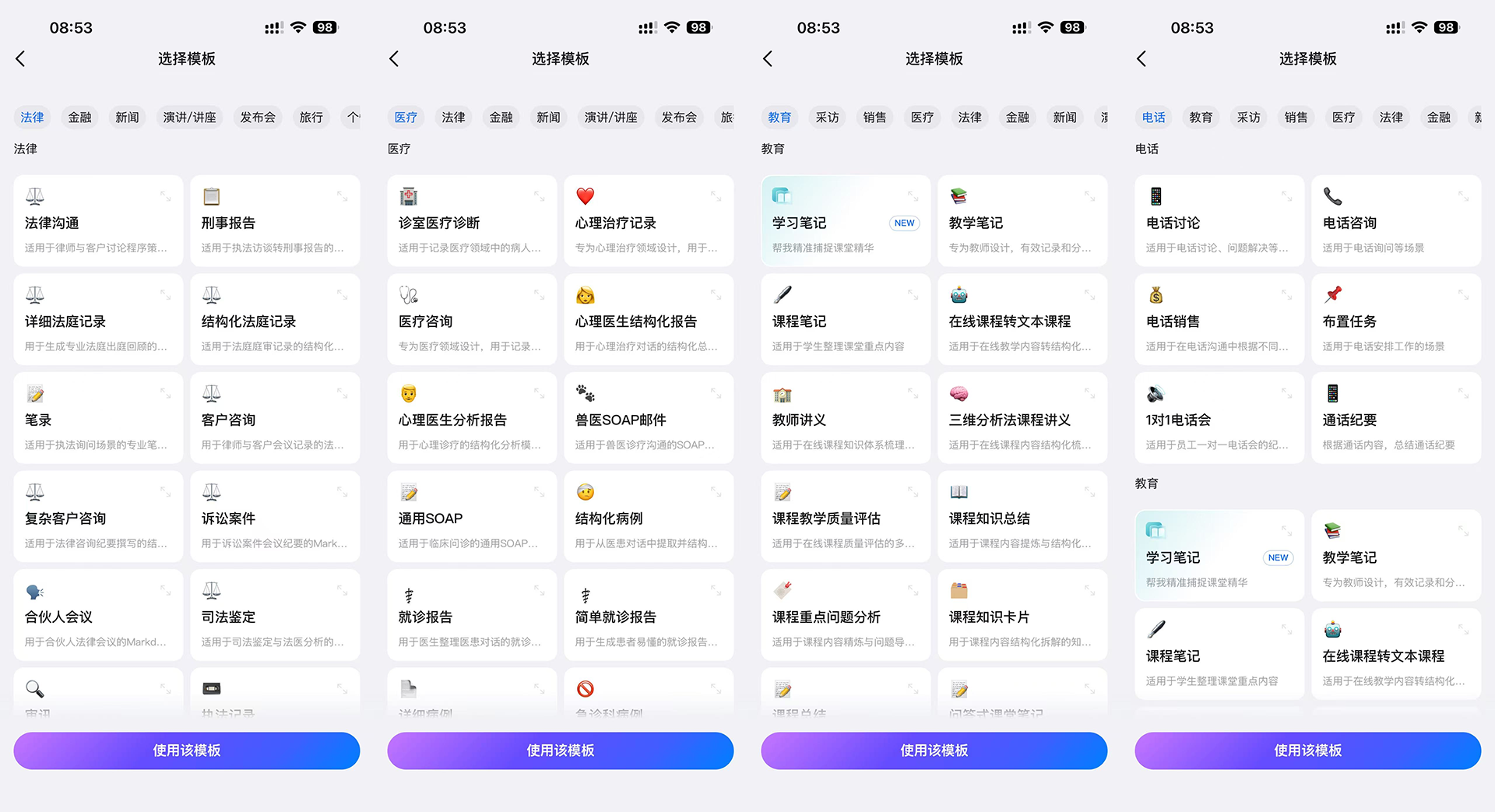 除了展示的会议纪要之外,它还支持多达200+生产力场景所需的AI模板。也就是说,只要是您需要的,它几乎都可以帮到您!最重要的是,它还涵盖了法律、金融、医疗等专业领域。
