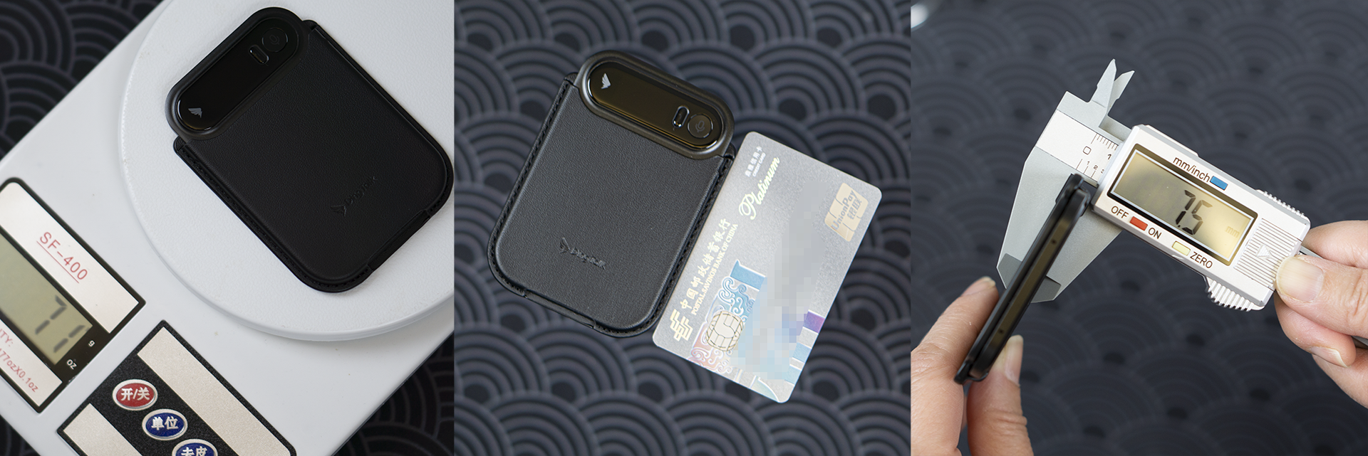二来,它本身就非常的轻薄,重量约71g(含有卡套),表面积与信用卡大小相仿,厚度约在7.5mm(含有卡套)。根据我们近一周的使用来看,它并不会带给我们使用时候的“异物”感。