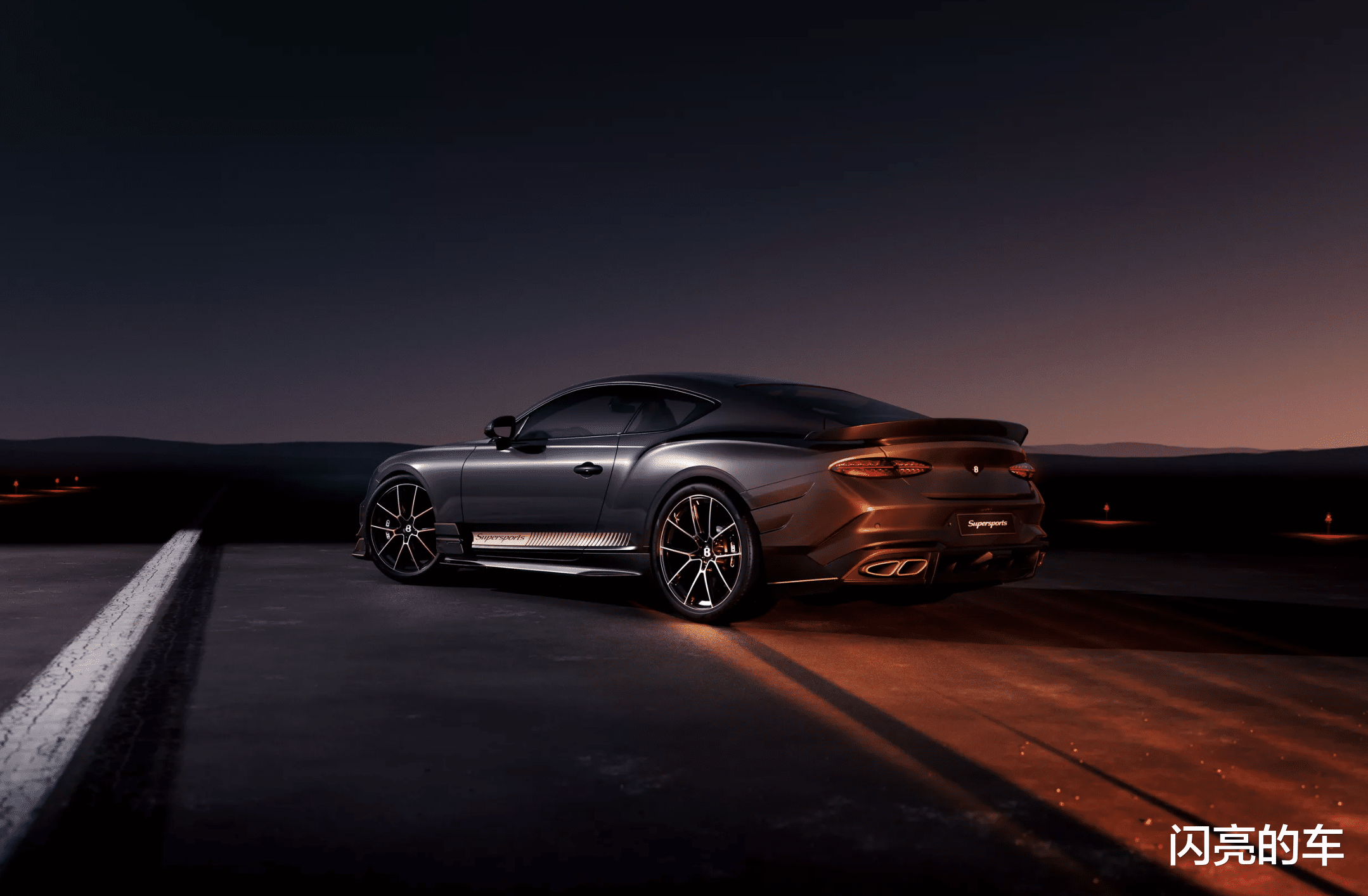 尾部新增了一个固定式尾翼,扩散器也经过了重新设计和改进,两者共同构成了尾部的一套空气动力学套件,以上这些改进相比欧陆GT Speed而言,可以额外产生300公斤的下压力,从而能够帮助车辆在高速行驶时实现更加均衡的重量分配。而配备的Akrapovič钛合金排气系统,经过宾利的重新调校之后,能够充分展现横置V8发动机的性能,释放出“足够深沉且强劲的声浪”。