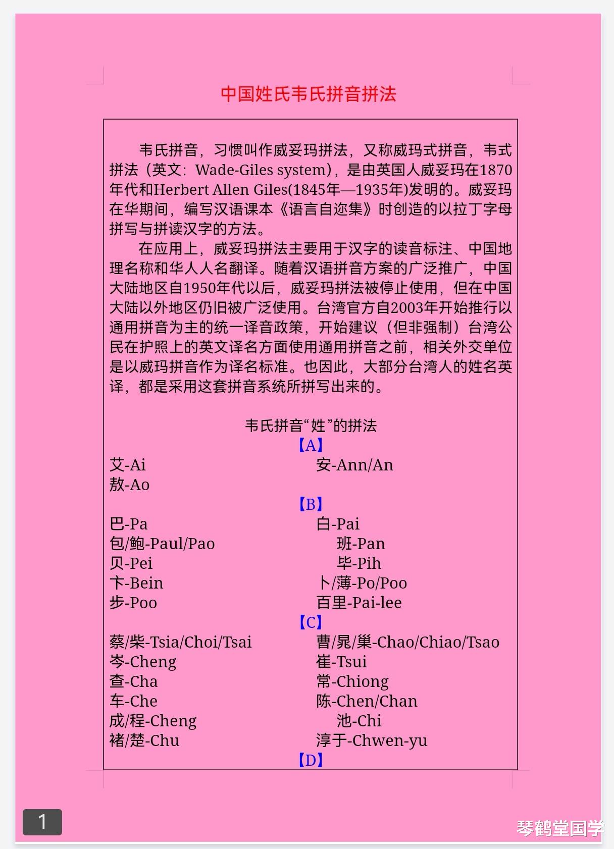 威妥玛式拼音法(Wade-Giles romanization)又称威妥玛-翟理思式拼音,简称威氏拼音法,于1867年始用,由英国人威妥玛(Thomas Francis Wade,1818年—1895年,今译为“托玛斯·韦德”)等人合编,也称“威氏拼音”,最大优点是利用送气符号(‘)来表示送气的声母。1958年中国推广汉语拼音方案前,威妥玛式拼音法广泛被用于人名、地名注音,是中国和国际上流行的中文拼音方案,影响较大。1958年后,逐渐废止。现除少数需要保持文化传统的场合外,基本不用,除一些已成习用的专有名词仍保留威妥玛拼音以外,大多数地名、人名已使用汉语拼音。