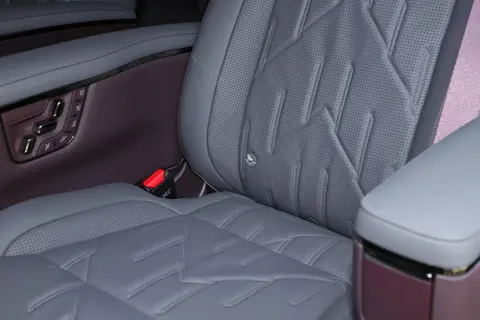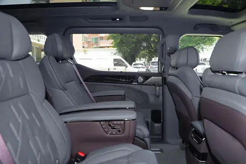 座椅配置也没因为是七座就缩水,全系都是Sofaro头等舱航空座椅,表面是SoftNAPPA头层真皮,摸起来手感细腻,长时间坐也不会闷。第二排座椅宽度有0.7米,还带16项调节功能,加热、通风、按摩都配齐了,老人坐久了也能舒舒服服。尤其是“伊姆斯躺椅”模式,靠背调到132度,腿托升起来,长途旅行时老人孩子都能躺着休息,缓解疲劳。针对儿童的设计也很贴心,座舱里的吸顶灯照度达到了国AA级护眼标准,孩子在车里看书、玩玩具不用担心伤眼睛。还有专门的儿童守护APP,能设置宝贝上车提醒、童锁守护、智慧屏控制这些功能,家长开车时不用分心,就能照顾到后排的孩子。车内用的都是低挥发性有机材料,还通过了中汽中心儿童绿色座舱认证和中环联合生态纺织品认证,孩子在车里摸爬滚打也放心。