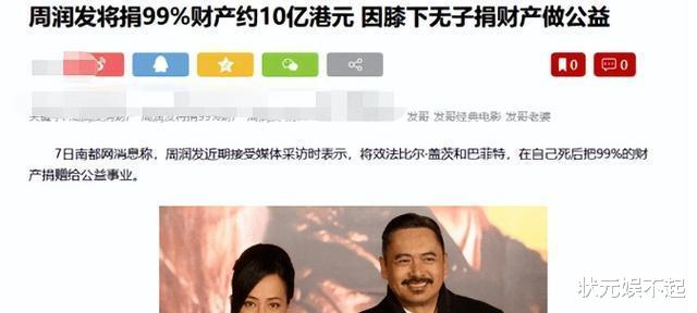 周润发因悉心照料妻子获赞好丈夫,但近年丑闻频出。他坦言:“我离世后,将把所有财产裸捐。”