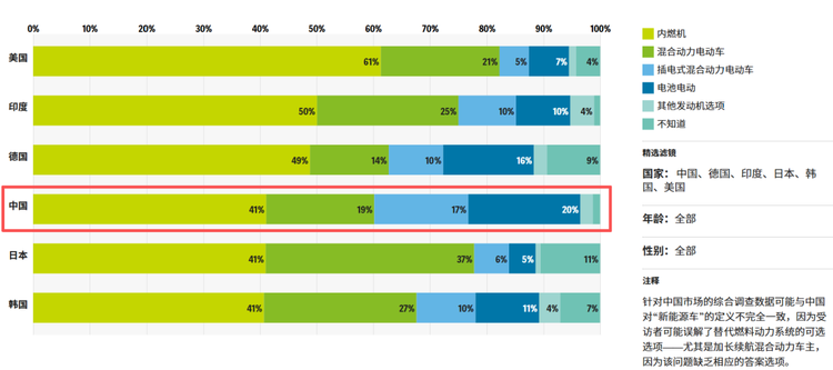 “电动化浪潮”在舆论场上的声量的确很大,但从这组数据可以看出,在真实的消费意愿中,依然有将近一半的中国人,更愿意选择一辆燃油车。