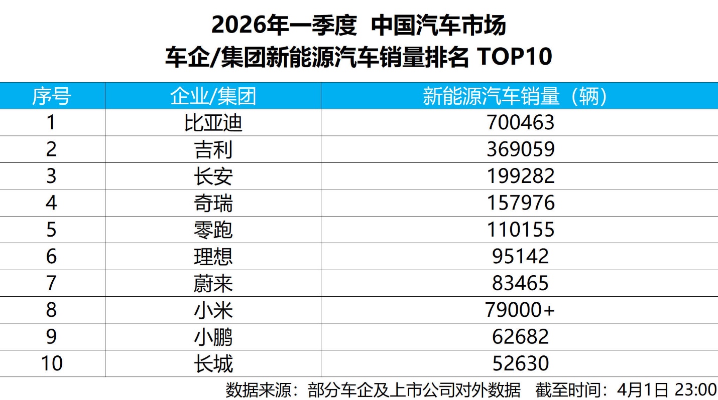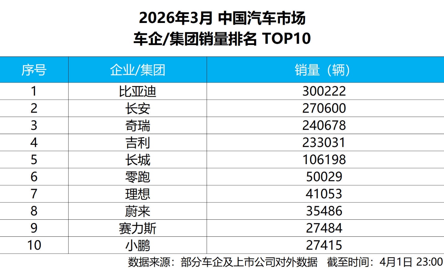 3月销量突破30万,拿下中国车企单月销冠;一季度新能源累计70万+,继续稳坐新能源销冠,双冠王基本没悬念。
