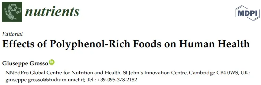 [3] GROSSO G. Effects of polyphenol-rich foods on human health [J]. Nutrients, 2018; 10(8): 1089. DOI: 10.3390/nu10081089