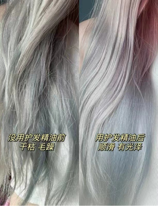 不过,护发精油通常情况下最好是用在洗发和护发素使用后,头发半干时涂抹,尤其是发梢部分,因为发尾是最容易干枯、毛躁的。而在护发精油的使用方式这里,最重要的一点是掌握好用量和涂抹方式。很多人一开始使用护发精油,都会误以为涂多了才有效,其实并非如此,过量的精油反而容易让头发看起来油腻。