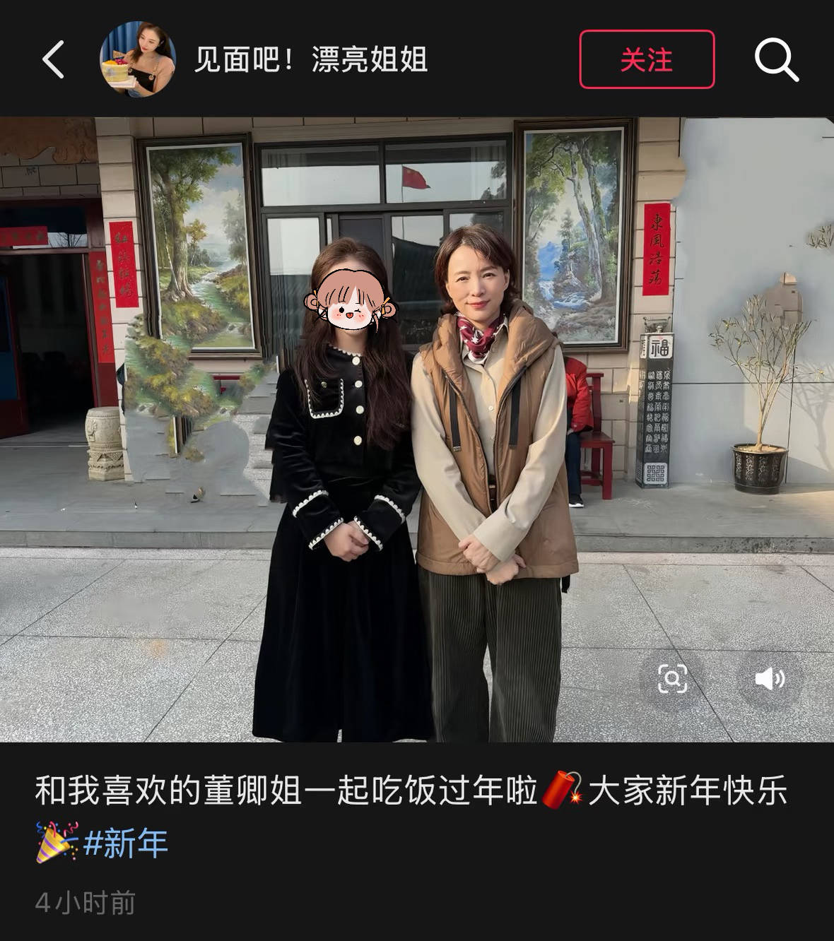 2月18日,也就是大年初二,有网友晒出和董卿一起吃饭过年的照片。这位小姐姐穿黑色大衣,打扮的格外精致。