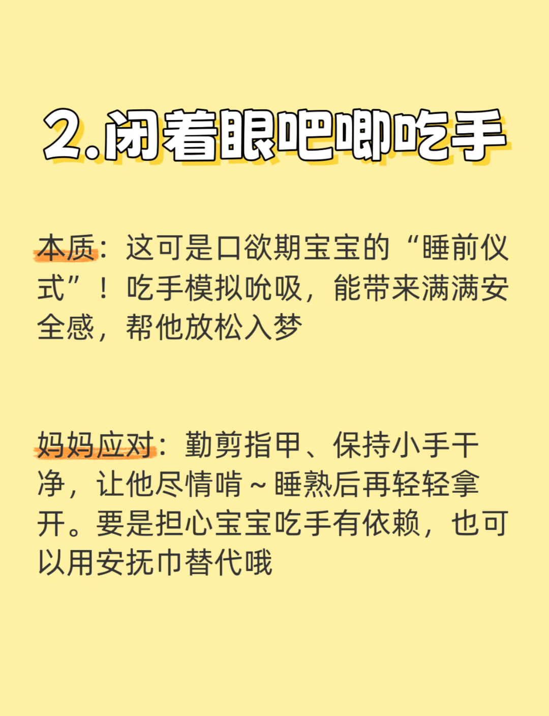 看着怀里的小宝贝,你是不是也常常被他们睡觉前的那些“小怪癖”逗乐又困惑?明明已经困得眼睛都睁不开了,却还摇着小脑袋,像个小拨浪鼓;刚刚安静下来,又闭着眼睛津津有味地吃起小手来,仿佛那是什么美味;有时候还会突然抓抓小耳朵,或者两只小手在空中挥舞着摸索什么;最让人心疼的是,明明睡着了,却忽然扁嘴大哭两声,没等你完全反应过来,又沉沉睡去了。