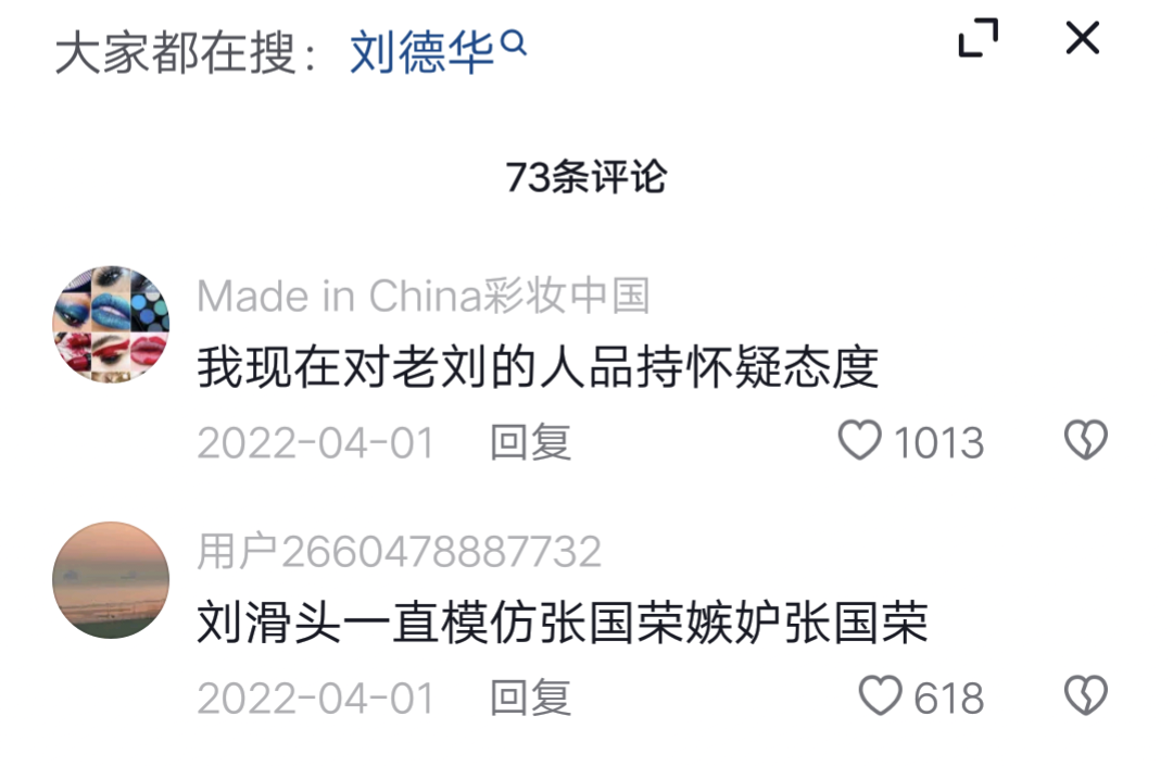 进入网络时代以来,相信大家一定有意无意的在这个网络上面看到过这样的文案: 《当年张国荣的葬礼几乎大半个娱乐圈都去了、唯独刘德华没去》这样的捆绑文案。这个捆绑文案每年在张国荣的祭曰一次,生日一次。从网页论坛到视频论坛,铺天盖地的发,在这些视频和文章中你可以随意打开一个评论区看,那是清一色拉踩刘德华的。