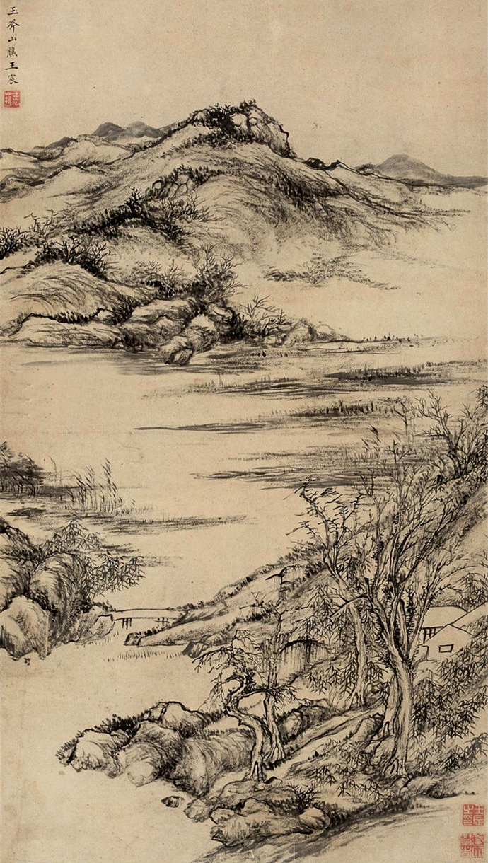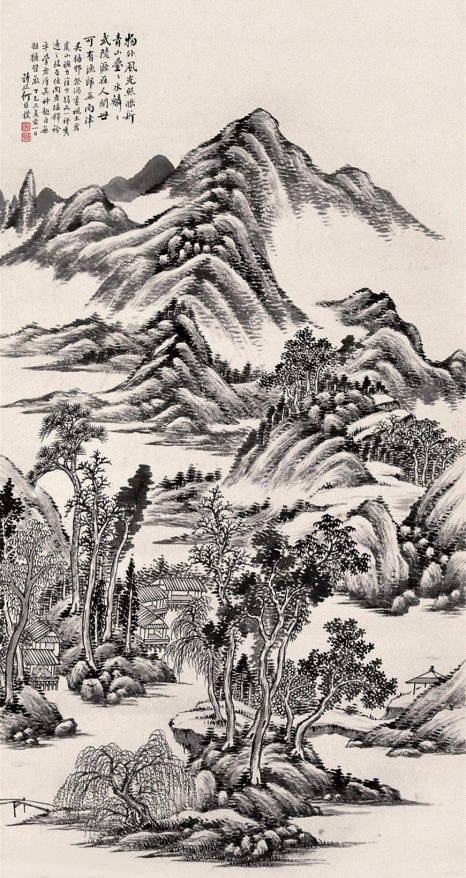 当你爱上了这种画法,不妨反过头来再看用线皴画的山水画,是不是觉得少了一些韵味呢?任何一种技法都要为作品内容服务,通过内容突出技法的特点。由此就有了形式与内容的统一,给人们带来美的享受。