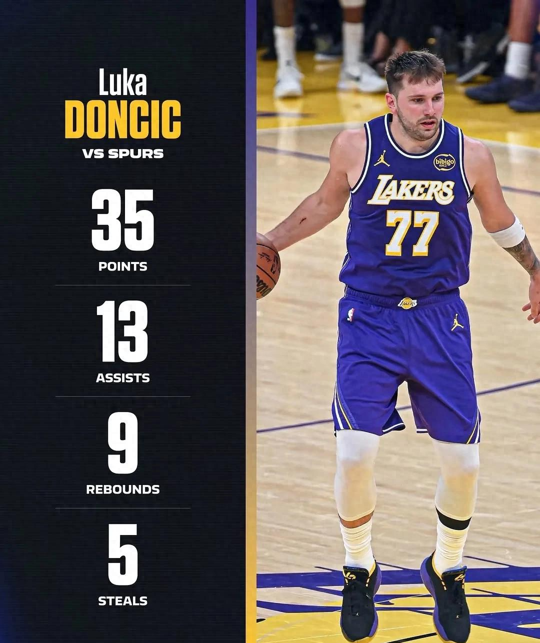 对阵马刺贡献5抢断追平了生涯纪录,如果再加上2盖帽,就是他之前在NBA从未有过的防守数据。对于“5+2”,东契奇表示:“这是我今天唯一做得好的事。”