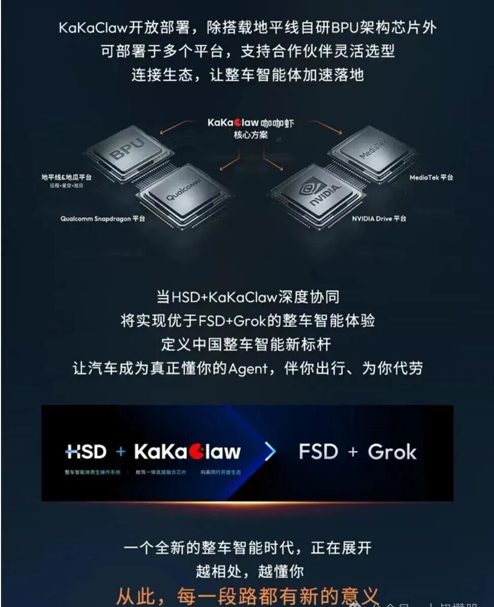 4月22日,北京车展前夕,地平线发布了整车智能体操作系统KaKaClaw咖咖虾。