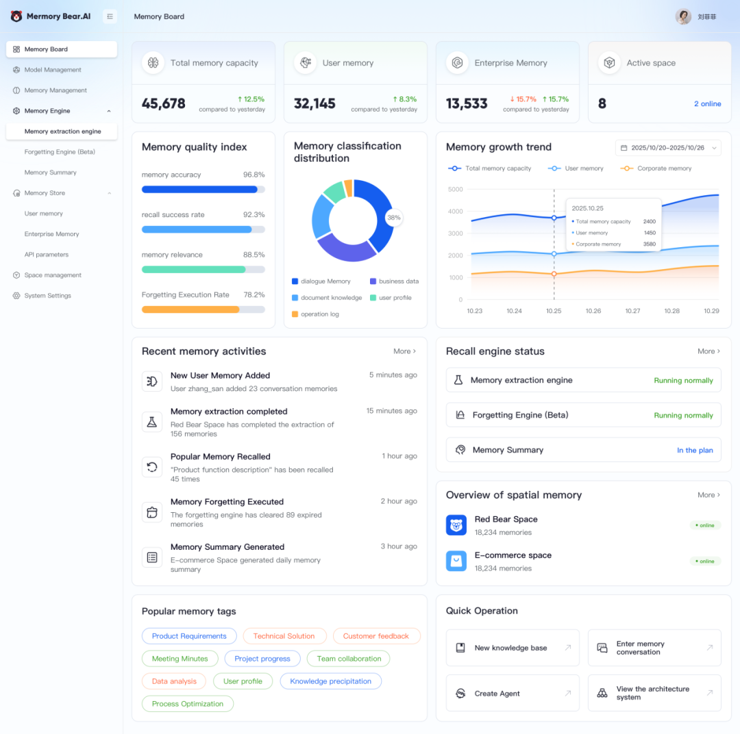 10月27日,在上海西岸国际科技消费嘉年华(WTCC)的聚光灯下,一家来自杭州余杭的AI公司——杭州红熊智能科技有限公司(以下简称“红熊AI”),正式发布了其自主研发的记忆科学核心产品“记忆熊”(Memory Bear)。这不是一款普通的科技产品,而是一套让AI“记住”对话、理解习惯,甚至预测需求的大模型记忆系统。