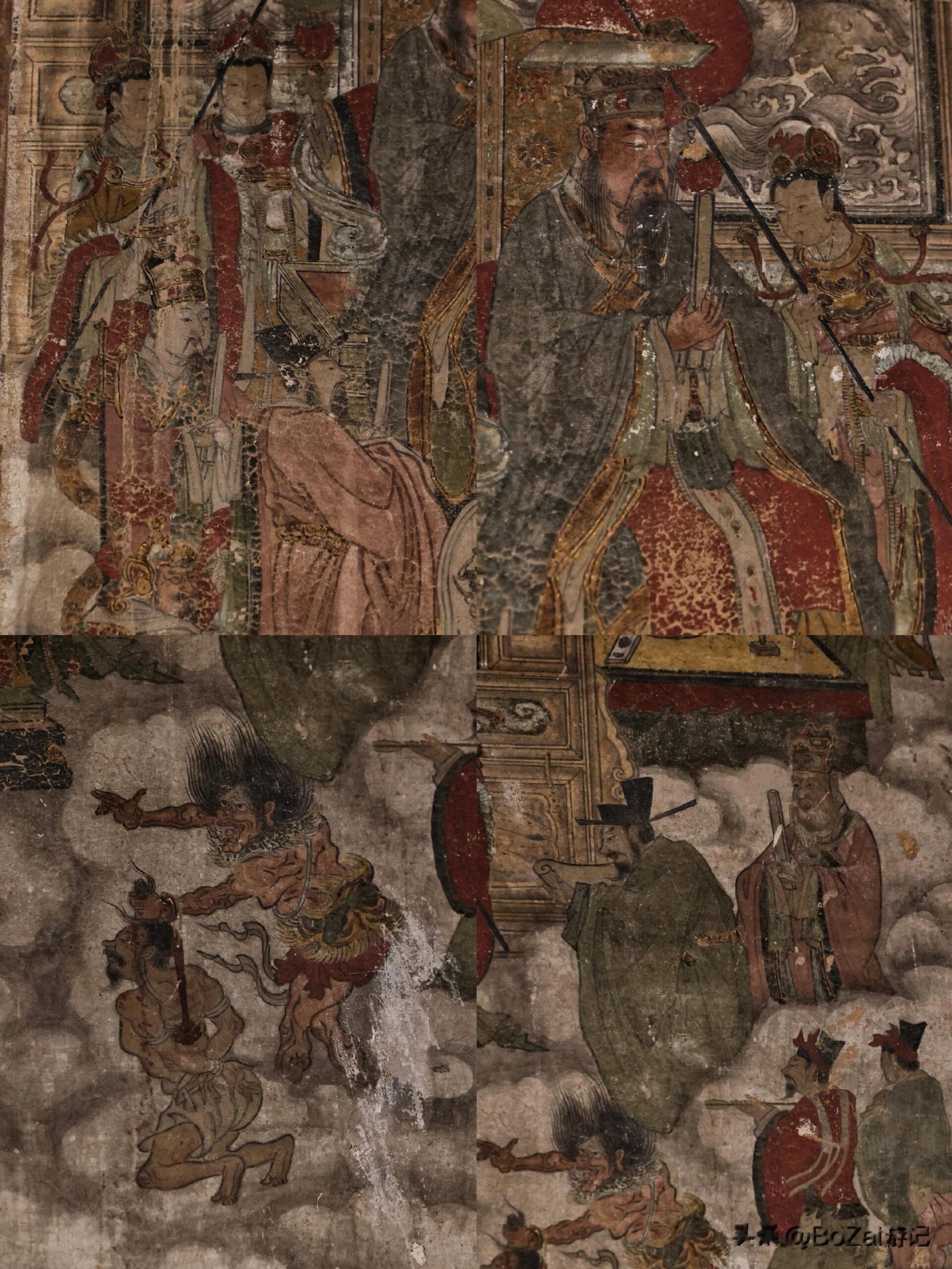 雷音殿的东配殿地藏殿内,藏着另一处惊喜——明代壁画精品。南北墙壁上绘满了十殿阎君和地狱故事,画面人物众多,表情生动,每一个形象都刻画得栩栩如生。阎君的威严、小鬼的狰狞、罪人的忏悔,都通过细腻的笔触展现得淋漓尽致,色彩虽有些暗淡,却依旧能看出当年的鲜艳与灵动。站在壁画前,仿佛被带入了那个神秘的地狱世界,每一个场景都极具冲击力,让人不由得屏住呼吸。这些壁画不仅是艺术的珍品,更是研究明代社会文化、宗教信仰的珍贵史料,工匠们用画笔将民间对善恶报应的认知描绘得如此生动,既起到了教化世人的作用,又展现了极高的艺术水准。