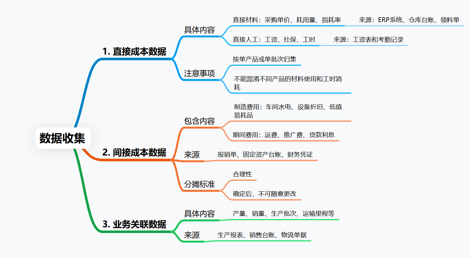 光看成本数据没用,得结合产量、销量、生产批次、运输里程等这些业务数据,来源包括生产报表、销售台账、物流单据。