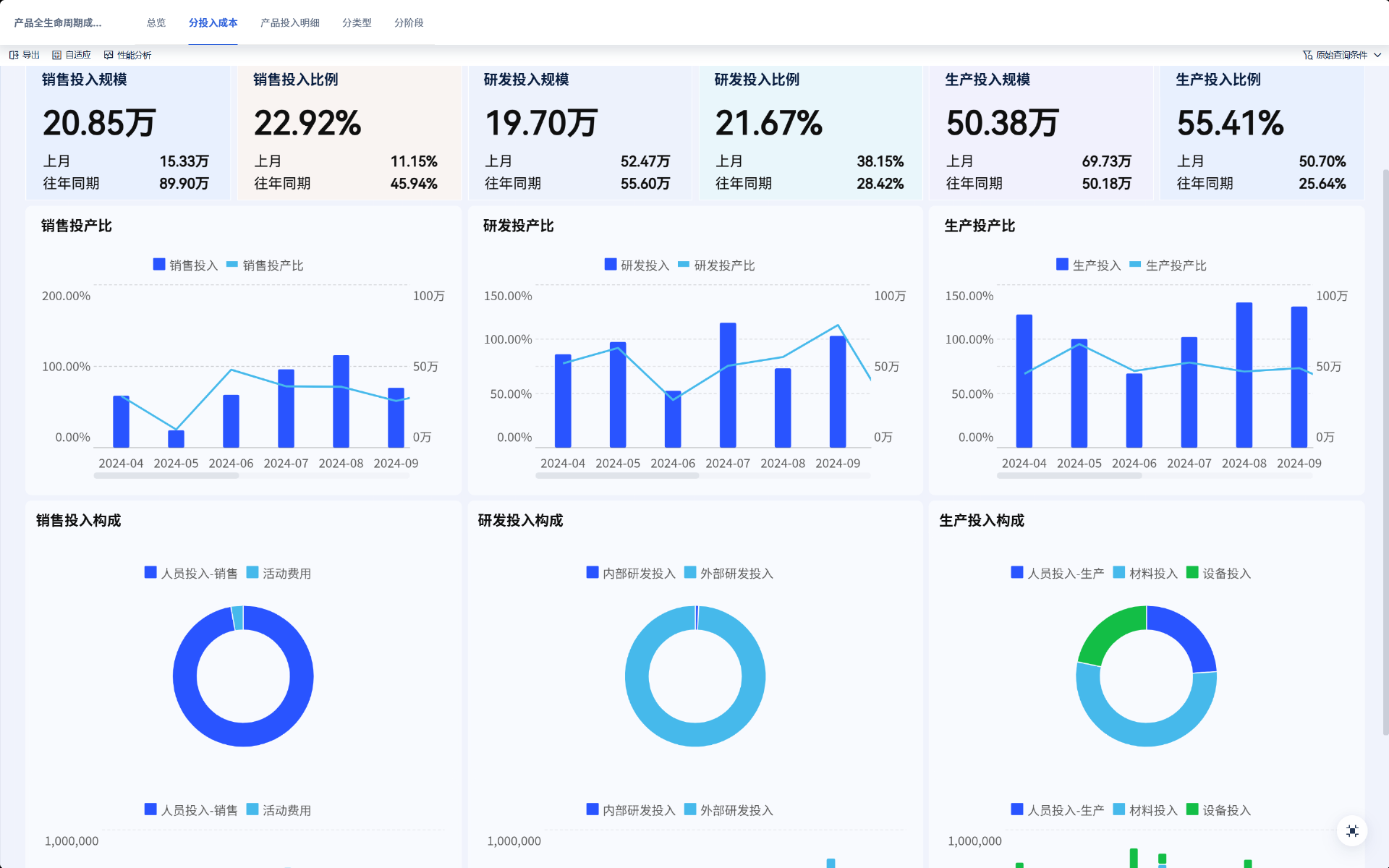 把每个产品的成本拆成直接材料、人工、制造费用、期间费用,算单位成本后,做同比、环比、竞品对比。