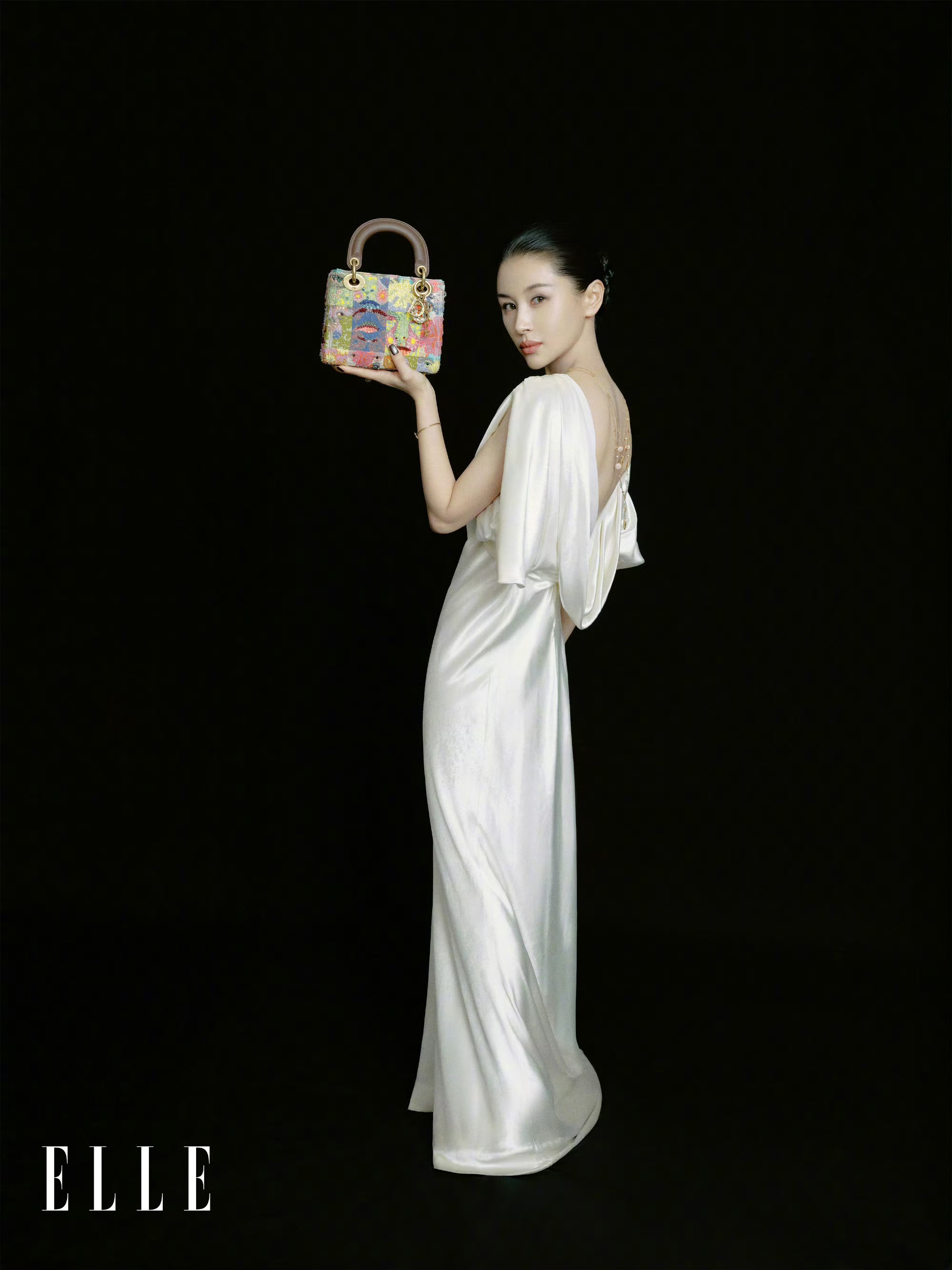 王子文身着一袭米白色缎面长裙,面料的细腻光泽自带矜贵高级感。手中DIOR艺术手袋,多彩艺术刺绣铺陈,与简约的裙装碰撞出强烈视觉反差。