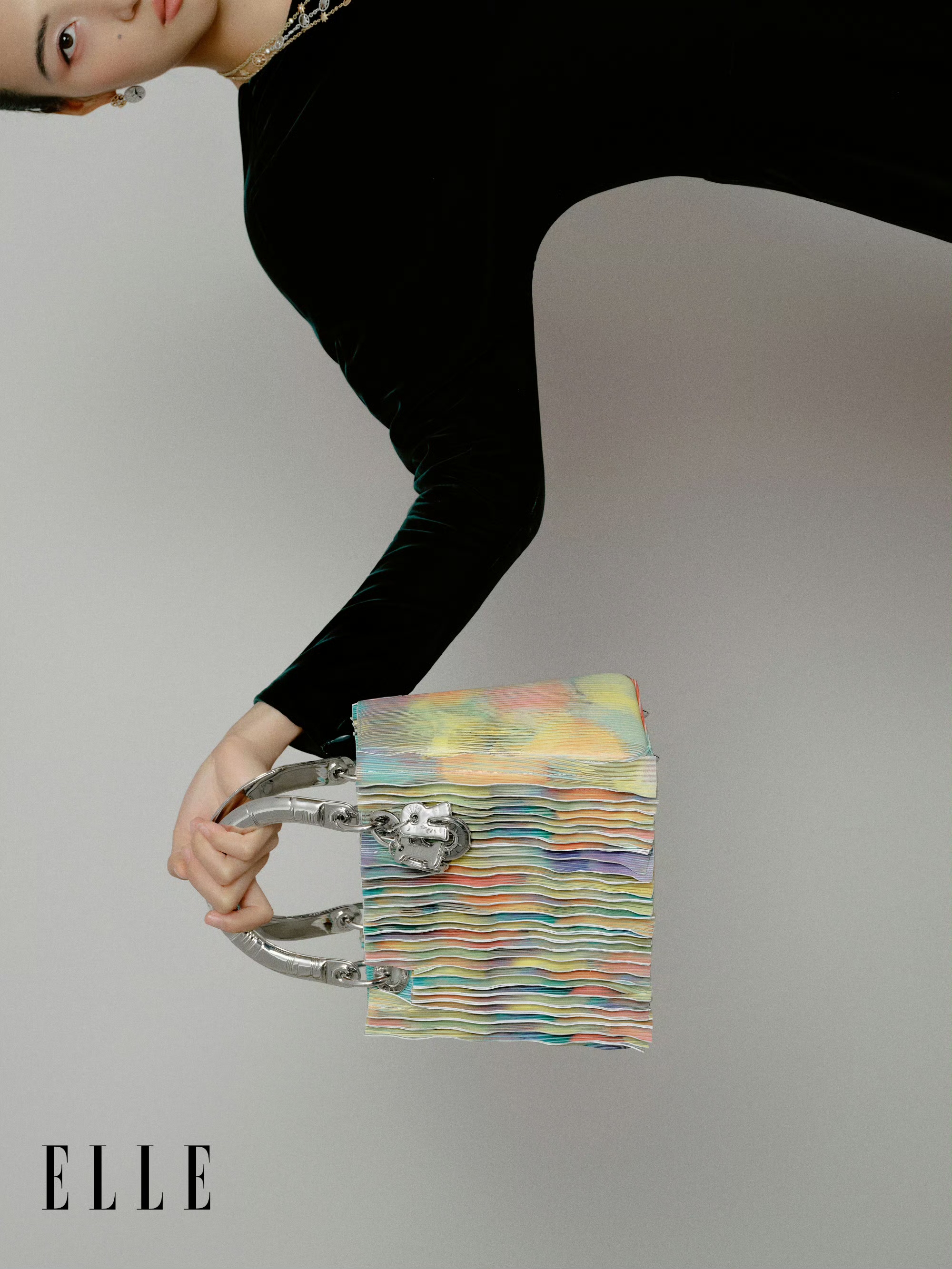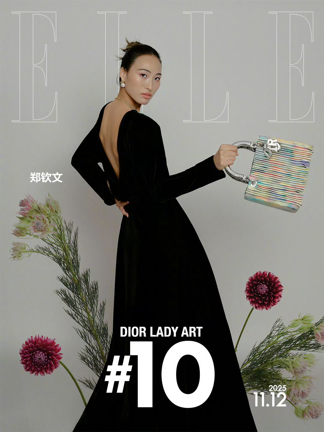郑钦文一袭黑色丝绒深V露背长裙,裙身垂坠感十足。眼神明亮自信,手中拎着一款多层彩色叠压设计的DIOR艺术手袋,整体造型优雅摩登,将时尚魅力与女性风采展现得淋漓尽致。