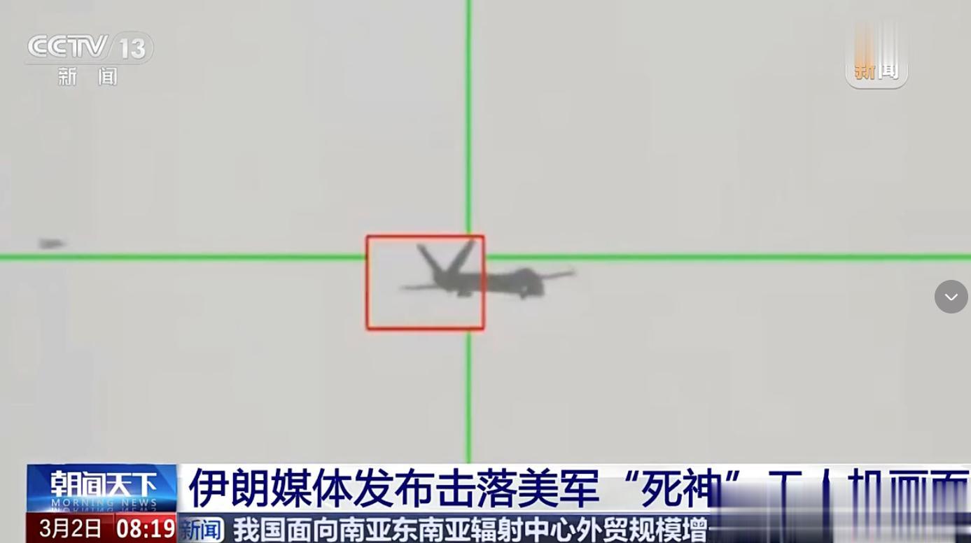 而更早之前,伊朗还公布了击落美军死神无人机的画面。