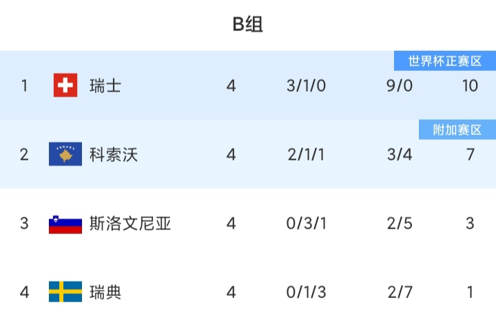 输给科索沃后,瑞典在被人家双杀的同时,也失去了通过世预赛直接晋级2026世界杯的资格。这些还不算,瑞典4场仅拿到了1分,只打进了2球,实在对不起他们世界第32的高排名,因此瑞典看起来有摆烂的嫌疑。可实际上人家有摆烂的资本,因为他们通过欧国联排名早已获得了1个半出线名额——世预赛附加赛资格。