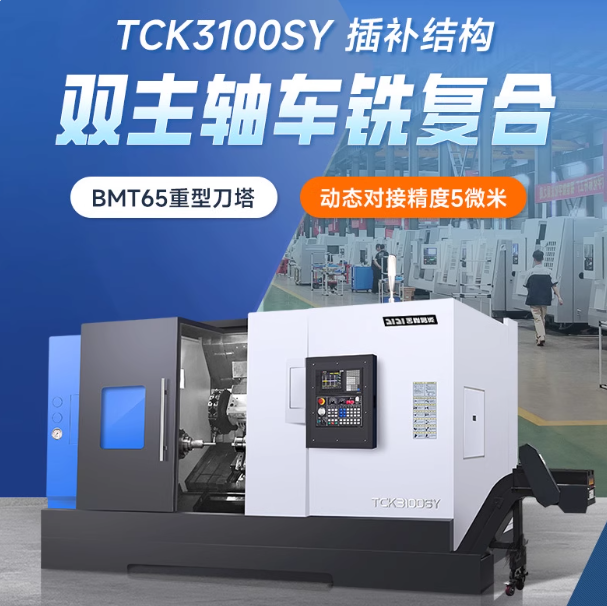 先说最实在的 “省时间”。以前加工轴类、盘类零件,得先用车床车外形,再换铣床铣槽、钻床打孔,光换设备、重新装夹就得花半个多小时,还容易因为定位不准出废品。TCK3100SL 自带双主轴,左边主轴车削完,右边主轴直接接过来继续铣、钻、攻丝,整个过程不用挪零件,一道工序就能把零件做完整。不少客户反馈,用它加工电机轴、液压阀块,单个零件的加工时间比以前缩短了近 40%,以前一天做 80 个,现在能做 120 个,订单交付周期也能提前。