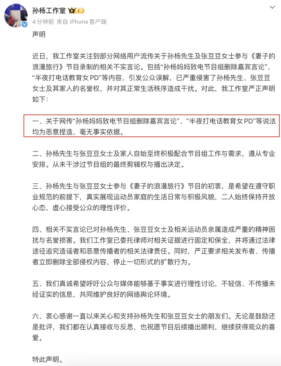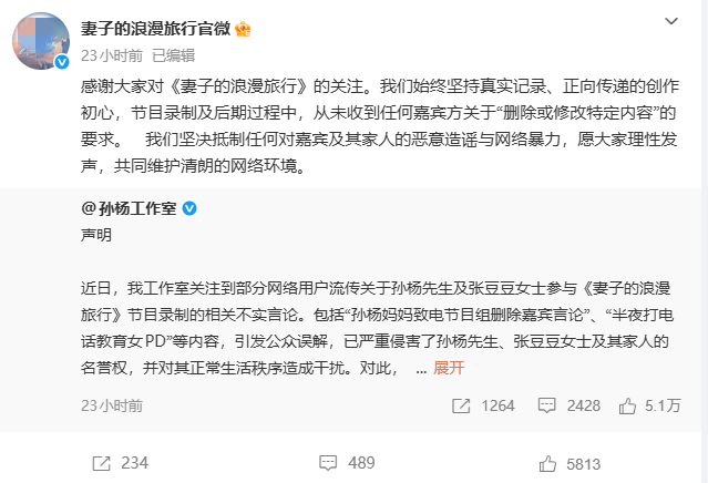 节目组也转发声明,没有任何嘉宾方要求删除或修改特定内容。