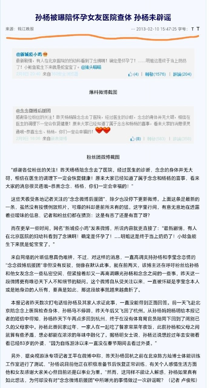 有网友爆料,孙杨和身为空姐的前前女友在2013年就生了儿子。