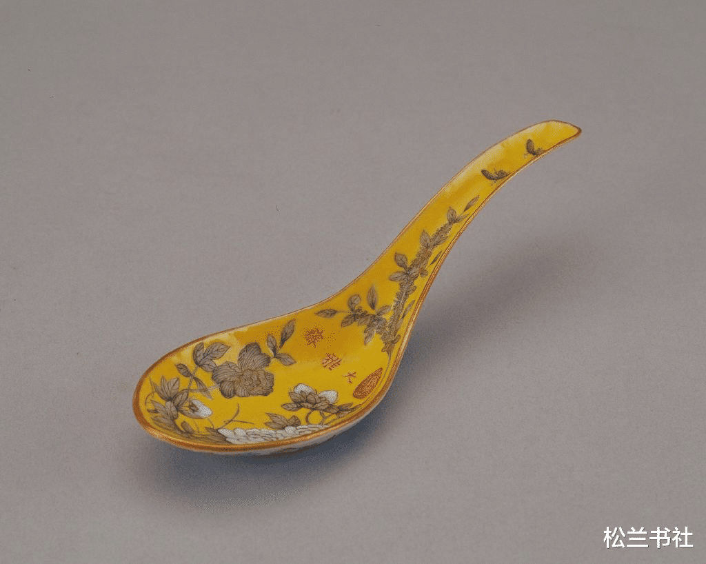 黄地墨彩花蝶纹羹匙 图片来源:故宫博物院官网