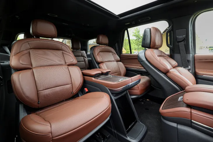 在动力层面,林肯SUV搭载了系列高性能发动机,其中全新一代领航员配备3.5升V6双涡轮增压发动机,最大功率可达291千瓦,峰值扭矩660牛·米,搭配10AT变速箱,实现了强动力与平顺性的兼顾,爬坡时转速未超2000转仍能稳步前行。