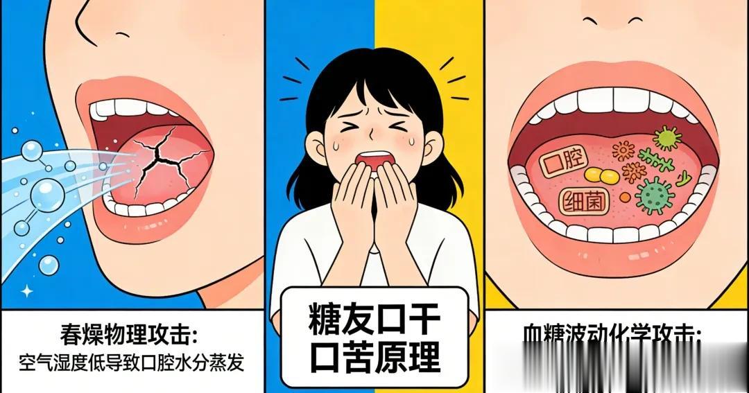 早上醒来嘴巴干得发苦?喝一大杯水也不解渴?白天喉咙发紧、连说话都费劲儿?即使日常吃得清淡、嘴里依旧是苦味?多数人第一反应是“上火”,随手泡凉茶应付,却不知这背后可能藏着血糖波动的预警,盲目降火反而可能伤糖!