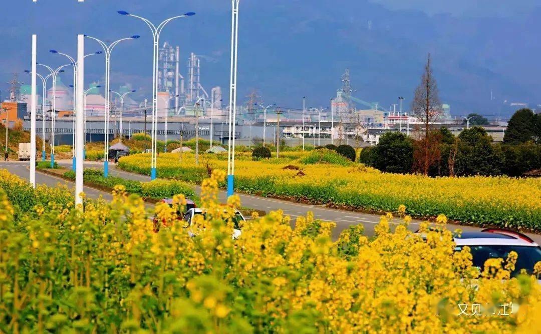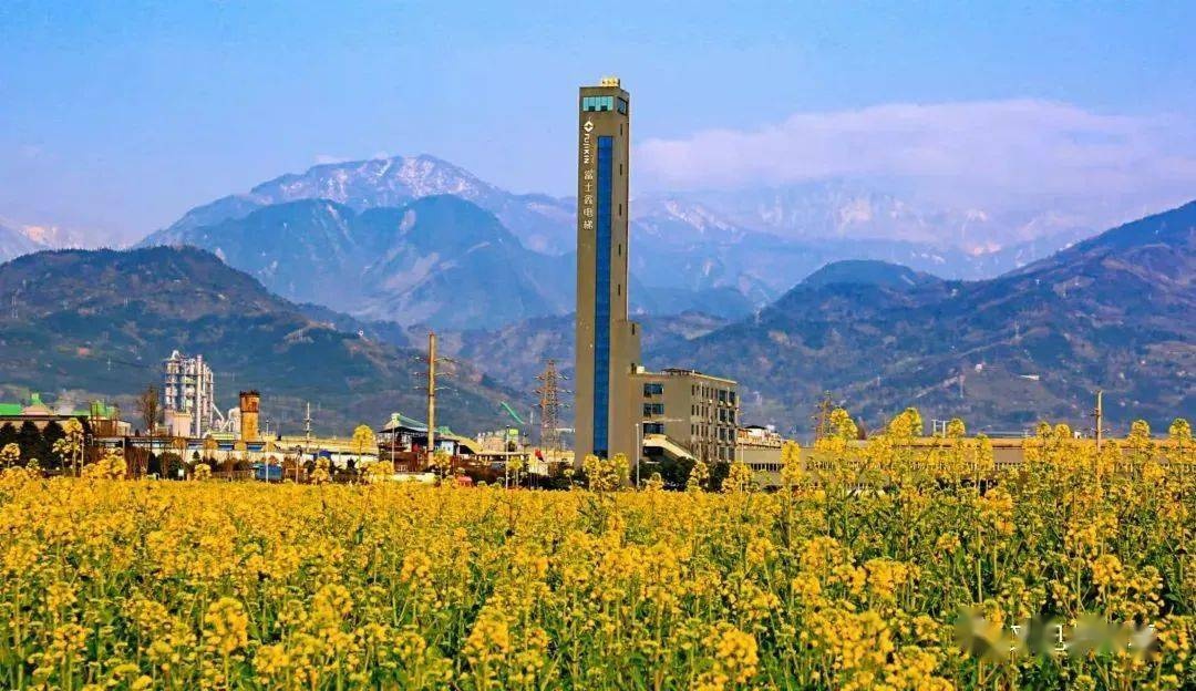 除了樱花,这里还有着美丽的油菜花田,金灿灿的花海一直延伸到远方,和远处的青山,近处的古镇,构成了一幅美丽的春日风景画,让人流连忘返。