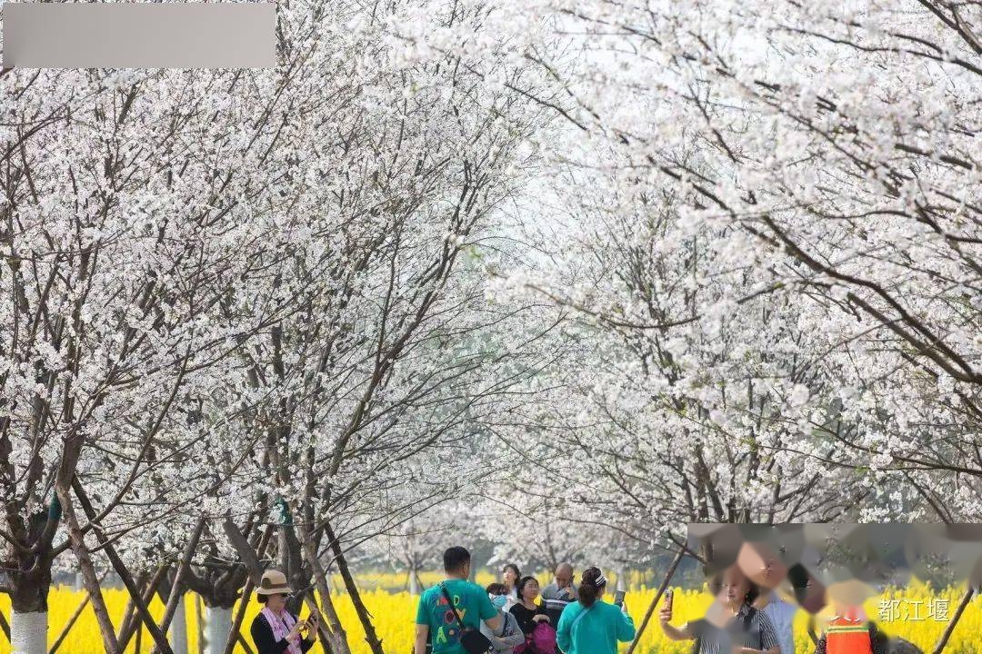 聚源镇,是都江堰的一个古镇景区,这里有着得天独厚的自然条件,尤其适宜樱花的生长,在镇上的樱花种植基地,不同品种的樱花竞相绽放,有的如云似雾,有的如火如荼,吸引了众多游客前来观赏拍照。