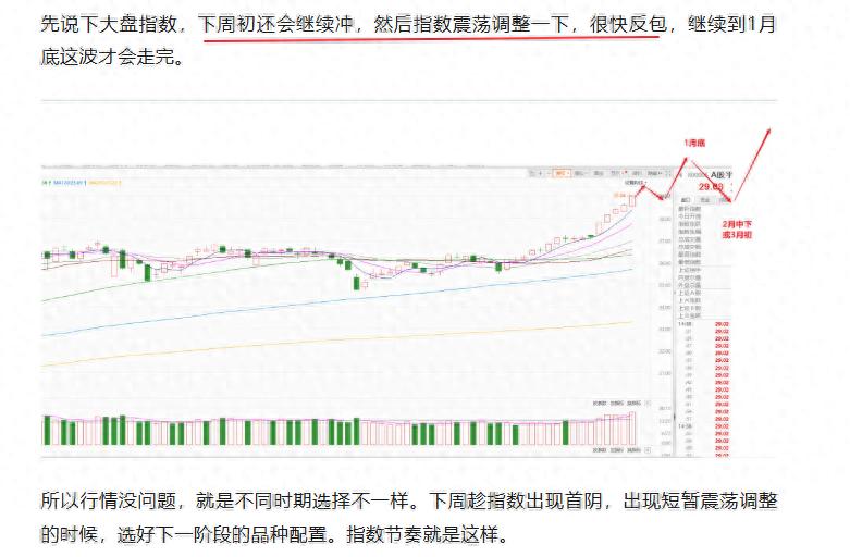 最快明日,最迟周三周四,就会结束连阳,出现一波强分化。所以今日和明日减仓是没问题的。没有只涨不跌的。震荡调整之后,后续继续看涨,后续更多的震荡向上到月底。元旦的时候和大家说到,1月份是上涨周期,所以不要担心行情问题。