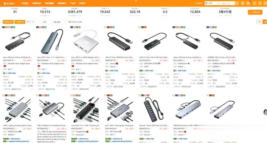 在亚马逊前台搜索 usb3.0 hub 发现了一个规律:搜索结果首页是16个自然位,说明这是一个血海品类。