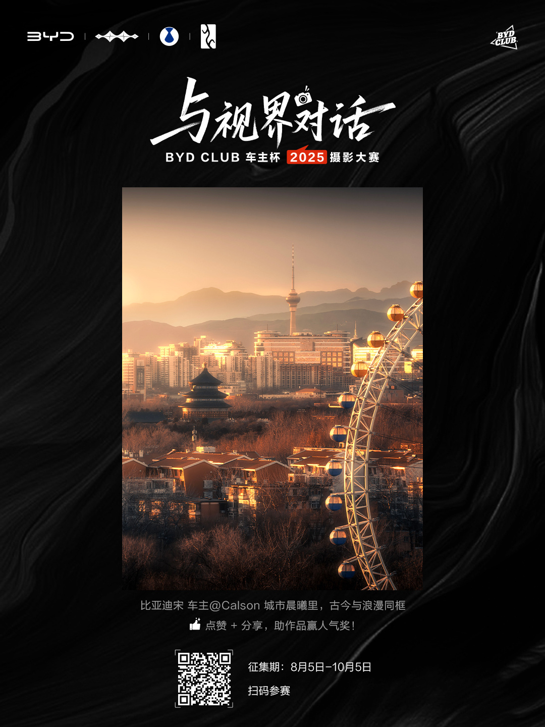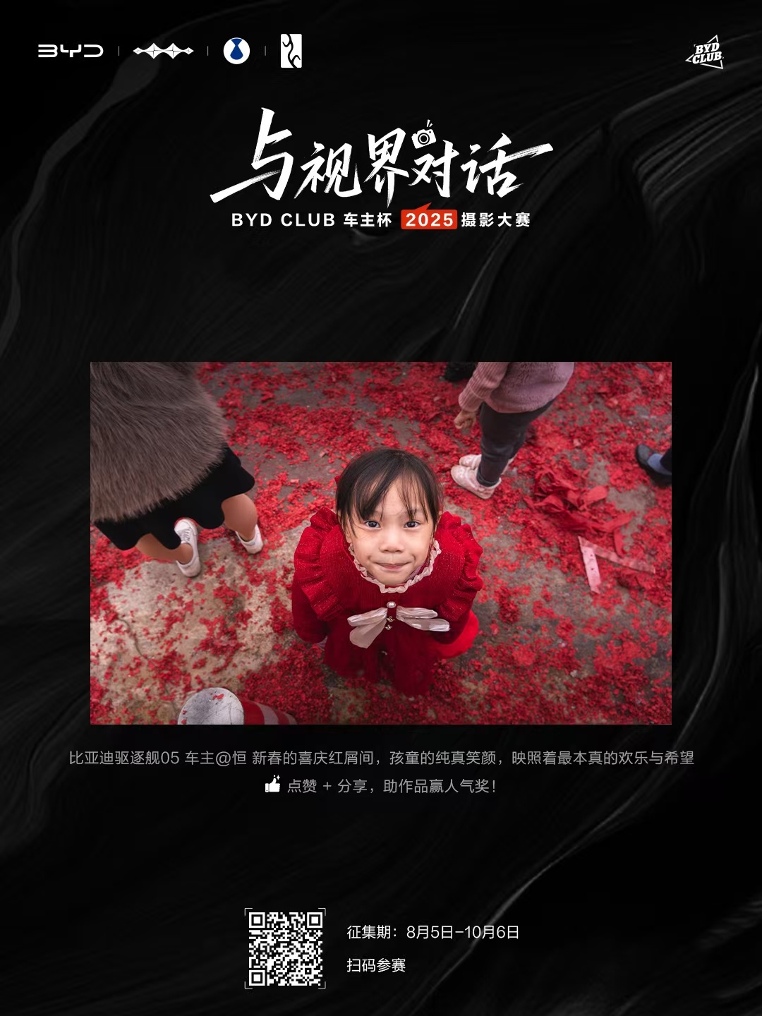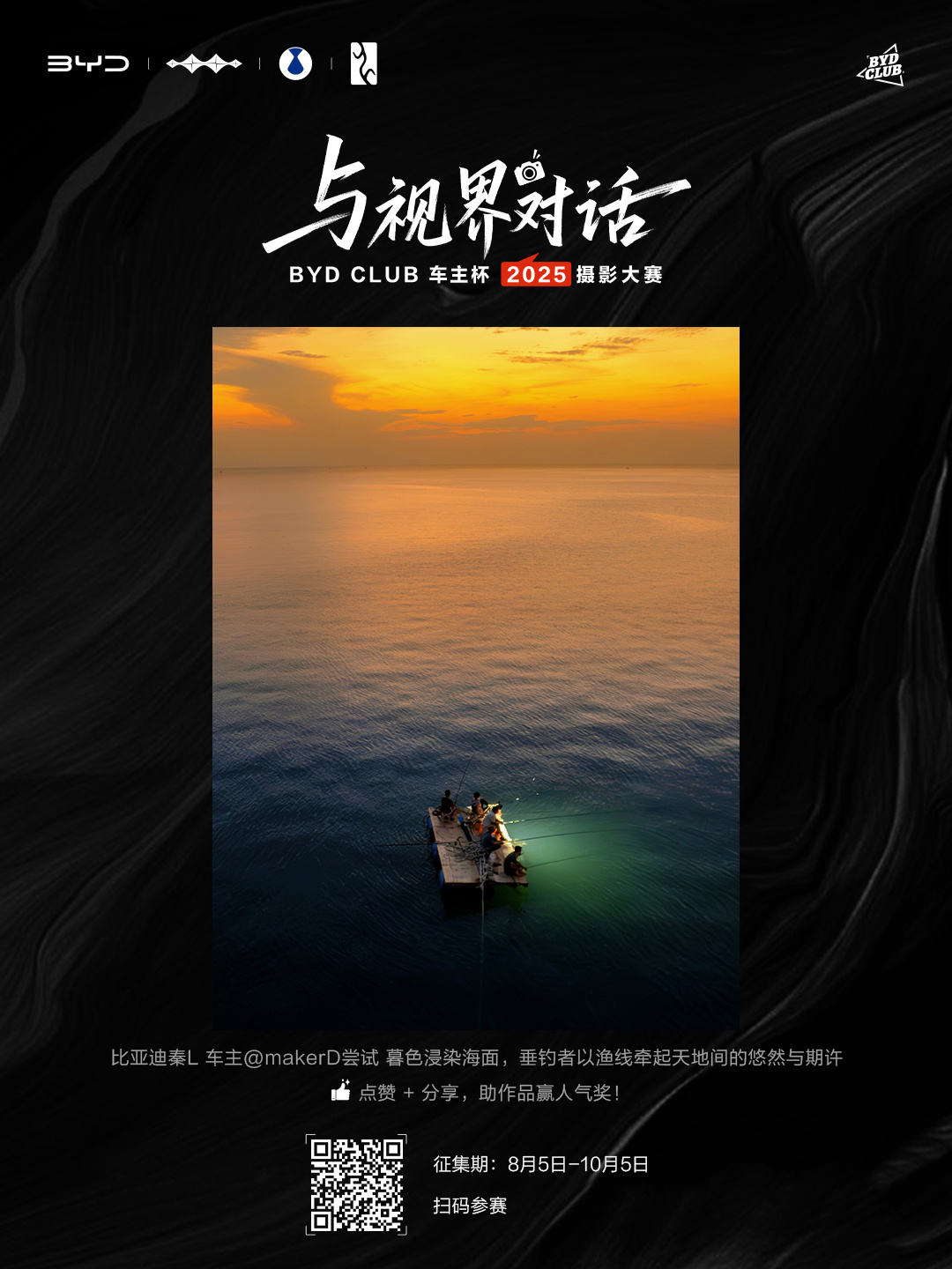 我简单看了一下这次BYD CLUB车主杯·2025目前的投稿作品,再次印证了那句话,摄影的意义,真的就是“走出去”!人生真的有着太多值得记录的东西,可能是下班后的落日,可能是路上偶遇的小猫,也有可能是我们路途中,大海的壮阔、天空的多变、生活的绚丽、生命的多彩,每一张照片背后,都是我们一路上的风景和故事,他们承载的不仅仅是值得记录的一个画面,更是一段经历一段过往。我也选了一部分我觉得有意思的作品,让大家共同评鉴一下。