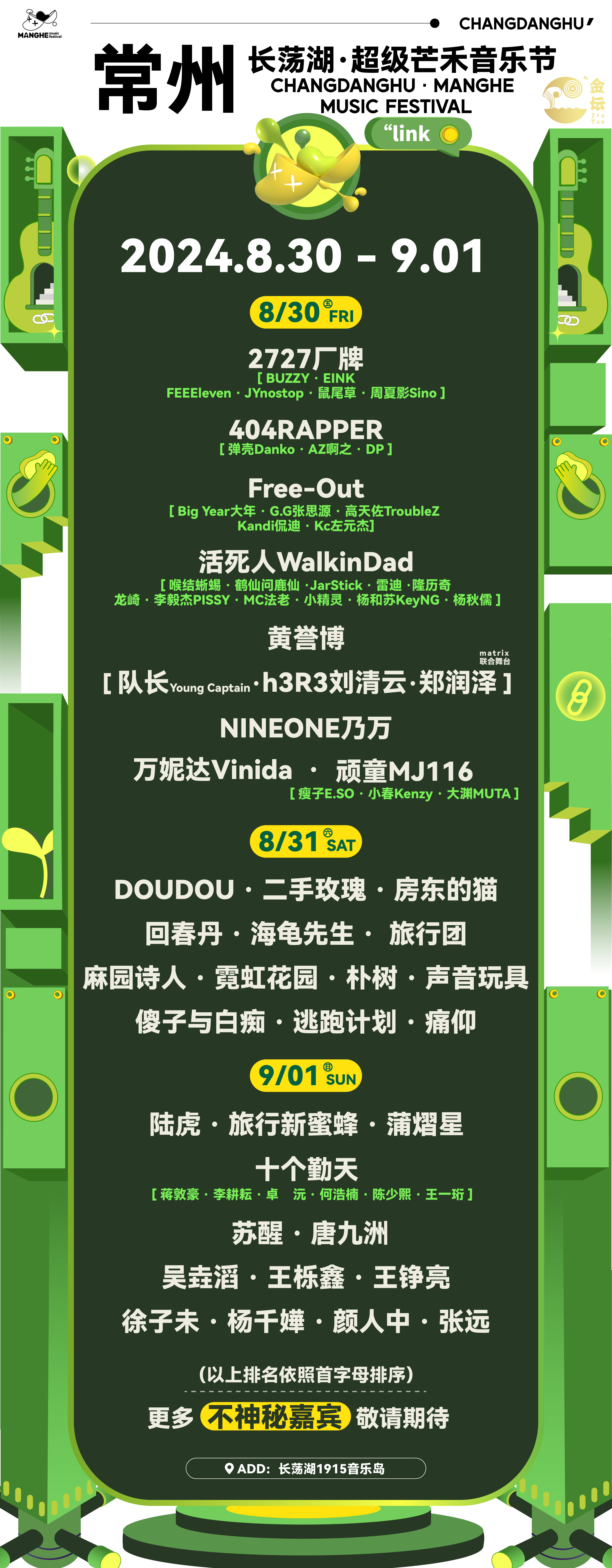 开票预告&三日舞台艺人分布|长荡湖·超级芒禾音乐节7月3日10: 18开票!