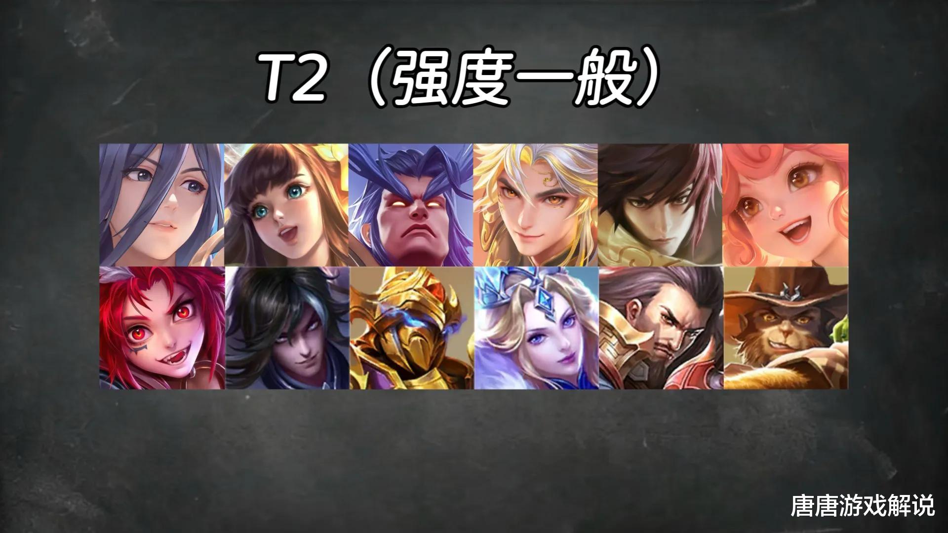 T2评级的英雄高达12位,他们的强度中规中矩,有缺点但并不致命,如果英雄熟练度高,又有一定的操作,在路人局会有非常亮眼的操作。