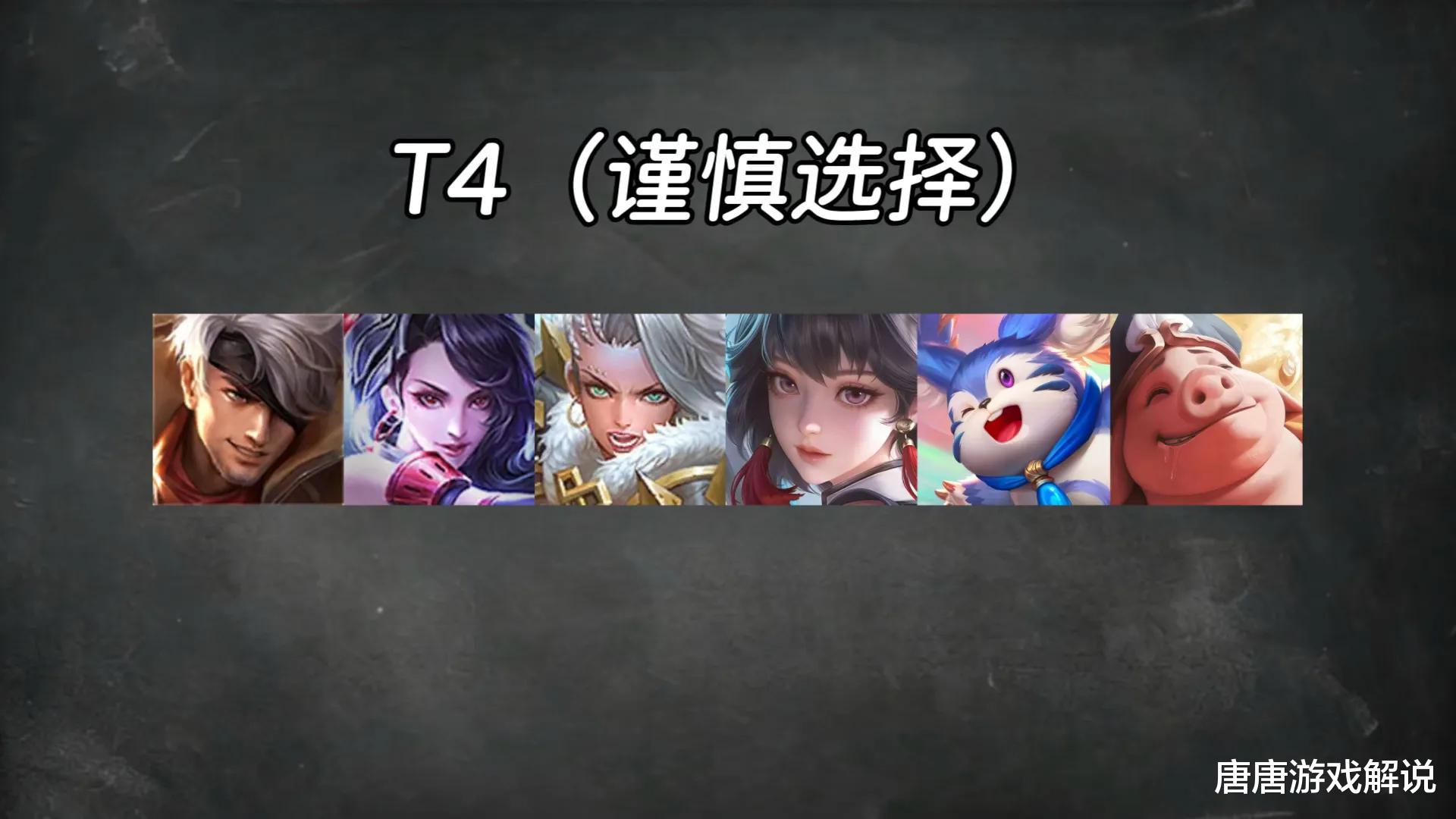 T4评级的英雄有6位,要选他们需要谨慎,不仅要考虑阵容情况,还需要自身对英雄有足够的理解,队友的配合也是至关重要的。