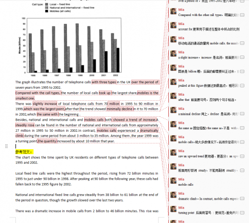 第一个问题是数值单位混淆。有位同学在描述the total number of minutes (in billions) of telephone calls时,把billion(十亿)误写成million(百万),导致整篇数据的量级完全偏离实际。这种错误不仅让数据失去说服力,更可能让考官质疑考生的细心程度。我想,或许大家在快速阅读图表时,容易忽略单位细节,或是被数字本身吸引而跳过了关键标注。