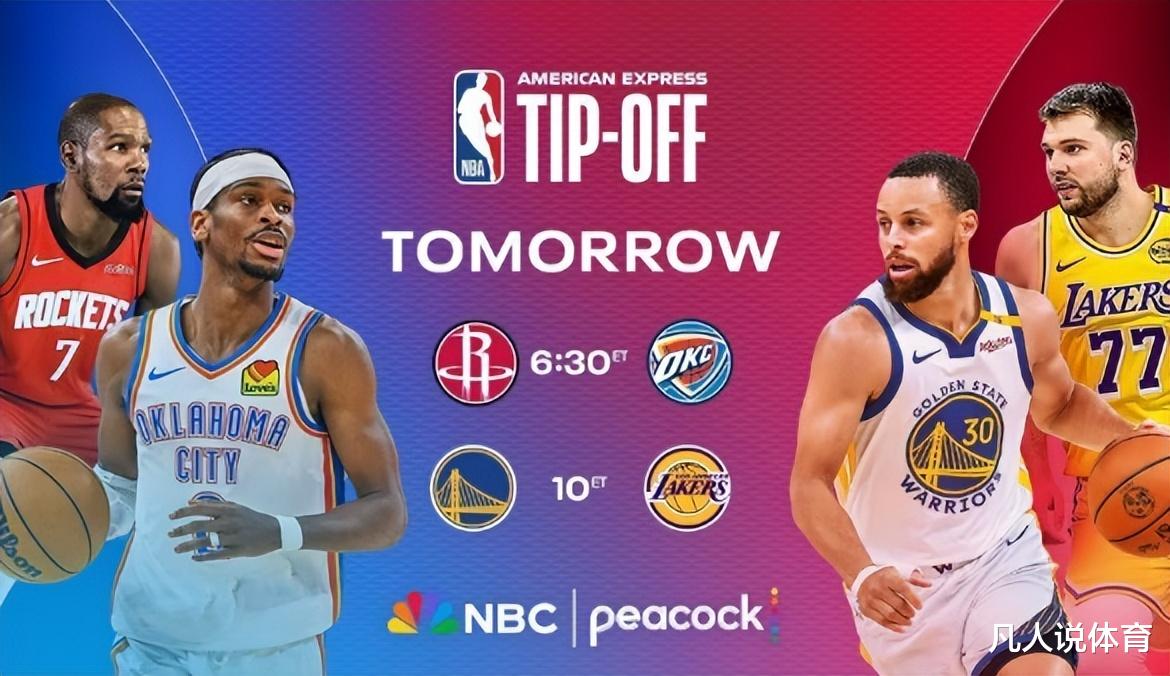 NBA新赛季揭幕战重磅来袭!雷霆卫冕冠军戒指之夜迎战火箭,勇士湖人上演东西部巅峰对决