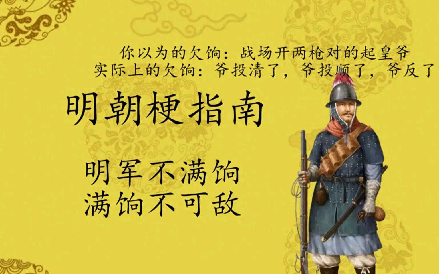 有个梗叫“明军不满饷,满饷不可敌”,好像说的是晚明时候的事,其实不然。明朝开国前和军户制刚实施那会儿,明军确实满饷,也确实无敌。可这样的好日子根本没过几天,或者说在明朝276年的绝大部分时间里,明军别说满饷了,连填饱肚子都难,还指望什么战斗力?