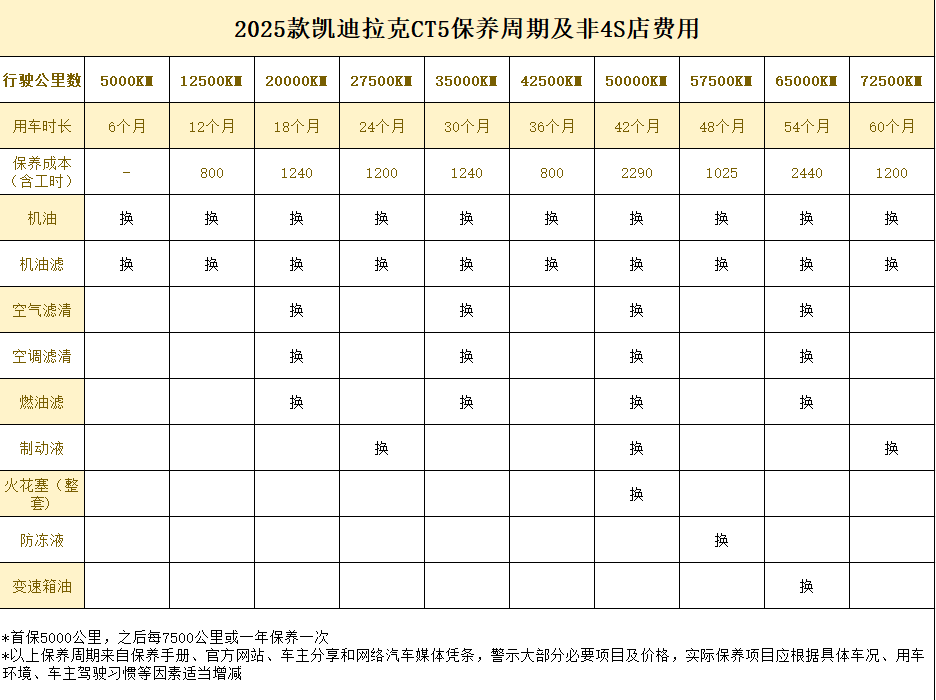 根据官方给出的保养手册来看,2025款凯迪拉克CT5的首保为5000公里,后续每7500公里保养一次。其中凯迪拉克允许保养周期有一定浮动,但超出范围过长可能影响相关部件质保,而且该车的发动机对机油的品质要求较高,建议使用5W-30全合成机油,不可混用不同规格的机油。