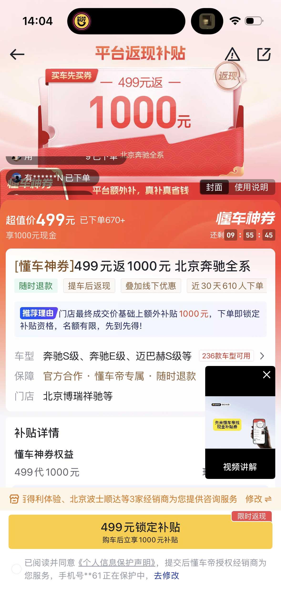 然后店补:磨了3000下来,在销售那又听说了一个券,买了个懂车神券499返1000,这个是全国通用的。
