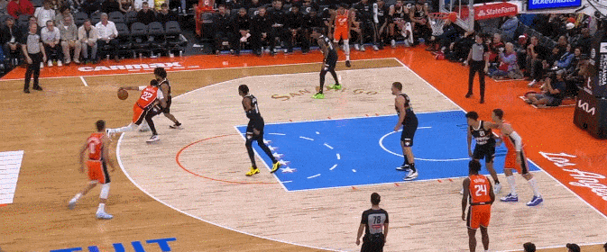 面对防守胯下犹豫步 背后运球 滞空上篮命中